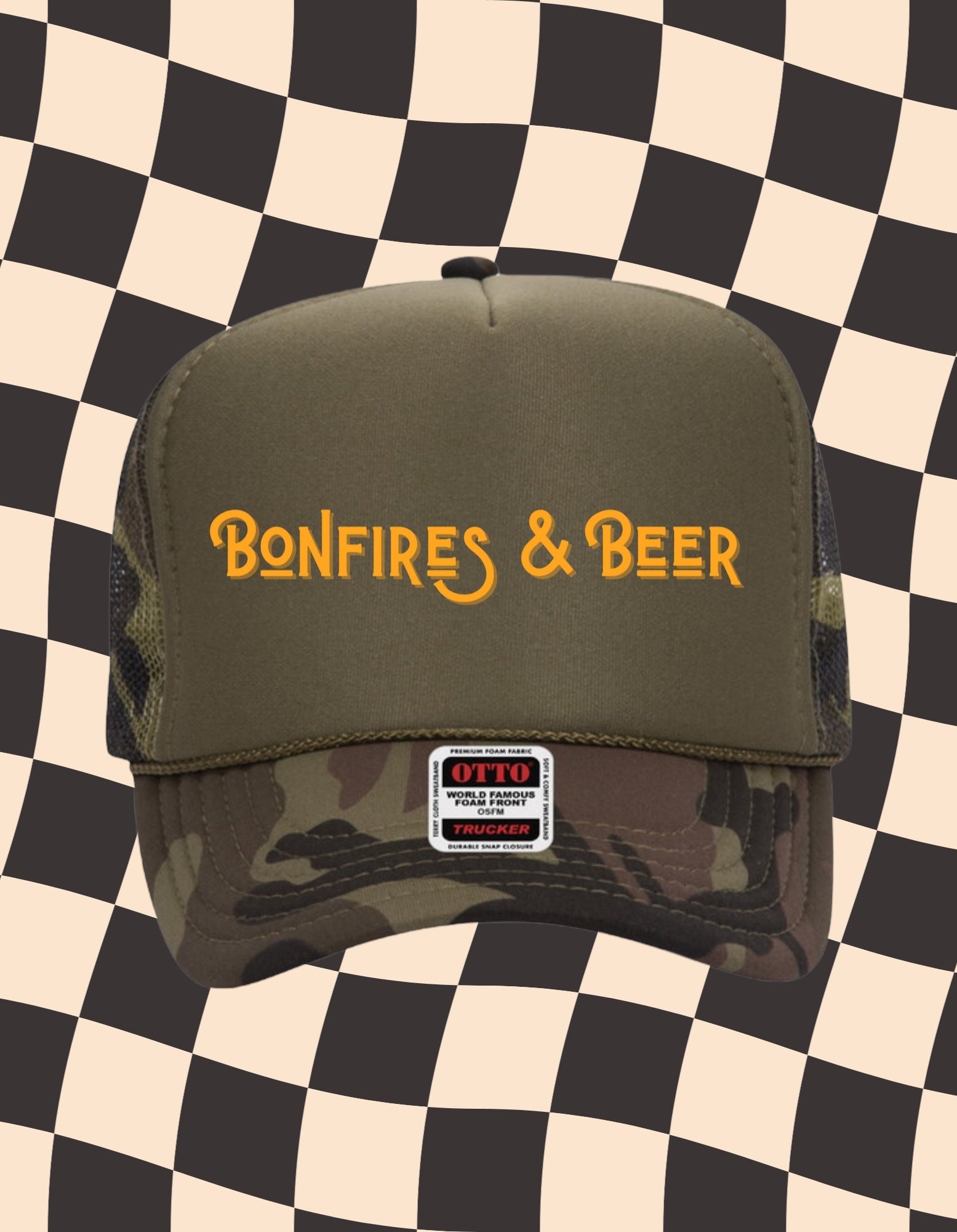 Meta Description: Shop the trending Bonfires & Beer trucker hat – the perfect embroidered cap for camping, tailgates, concerts & nights by the fire. Adjustable, vintage-inspired, boutique style.