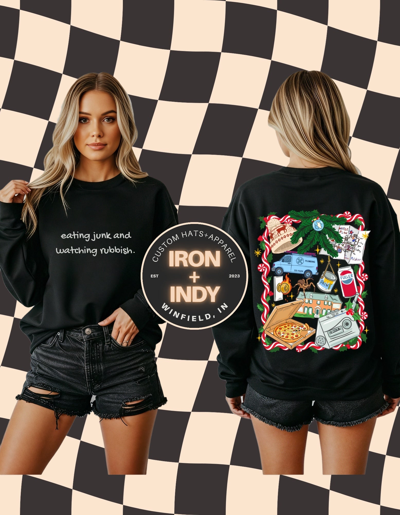 Get ready to cozy up with the most iconic holiday vibe ever. Our Eating Junk & Watching Rubbish crewneck brings all the nostalgic Home Alone magic to life — comfy on the front, full Christmas chaos on the back. From pizza and milk cartons to the McCallister house and boombox, this festive graphic is packed with all the little moments we love.