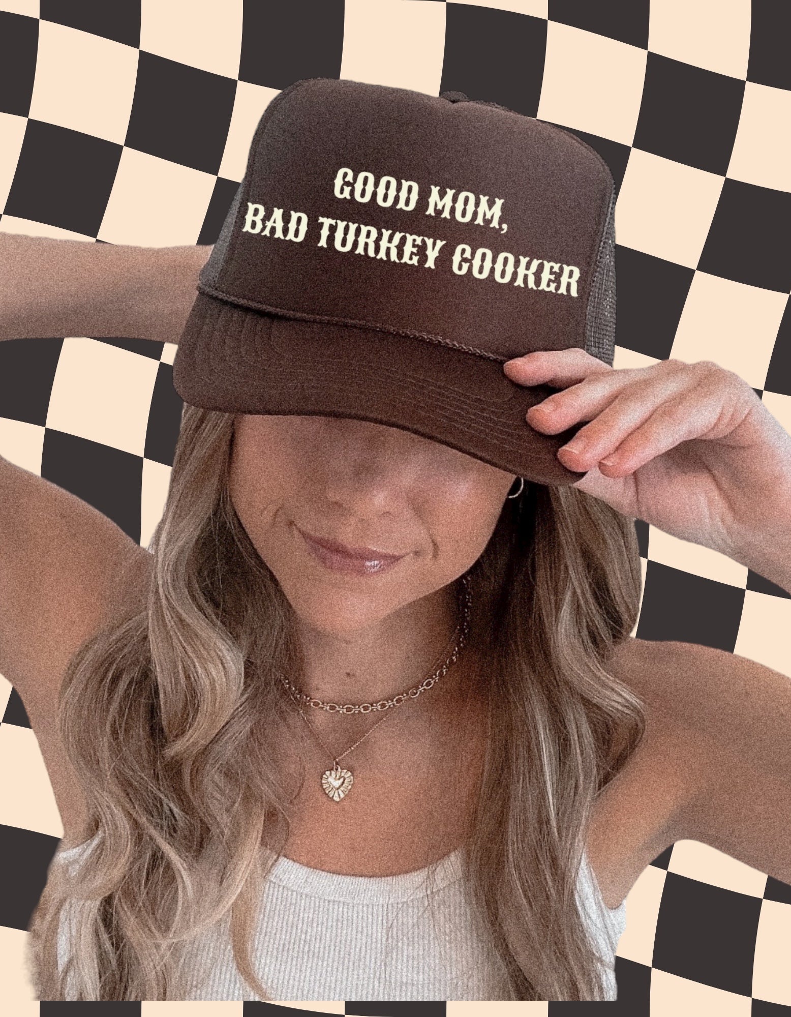 funny thanksgiving hat, good mom bad turkey cooker, brown trucker hat, fall boutique hat, mom trucker hat, cozy fall hat, turkey day accessories, retro western hat, thanksgiving gift for mom, friendsgiving outfit, holiday humor hat, boutique fall merch, iron and indy