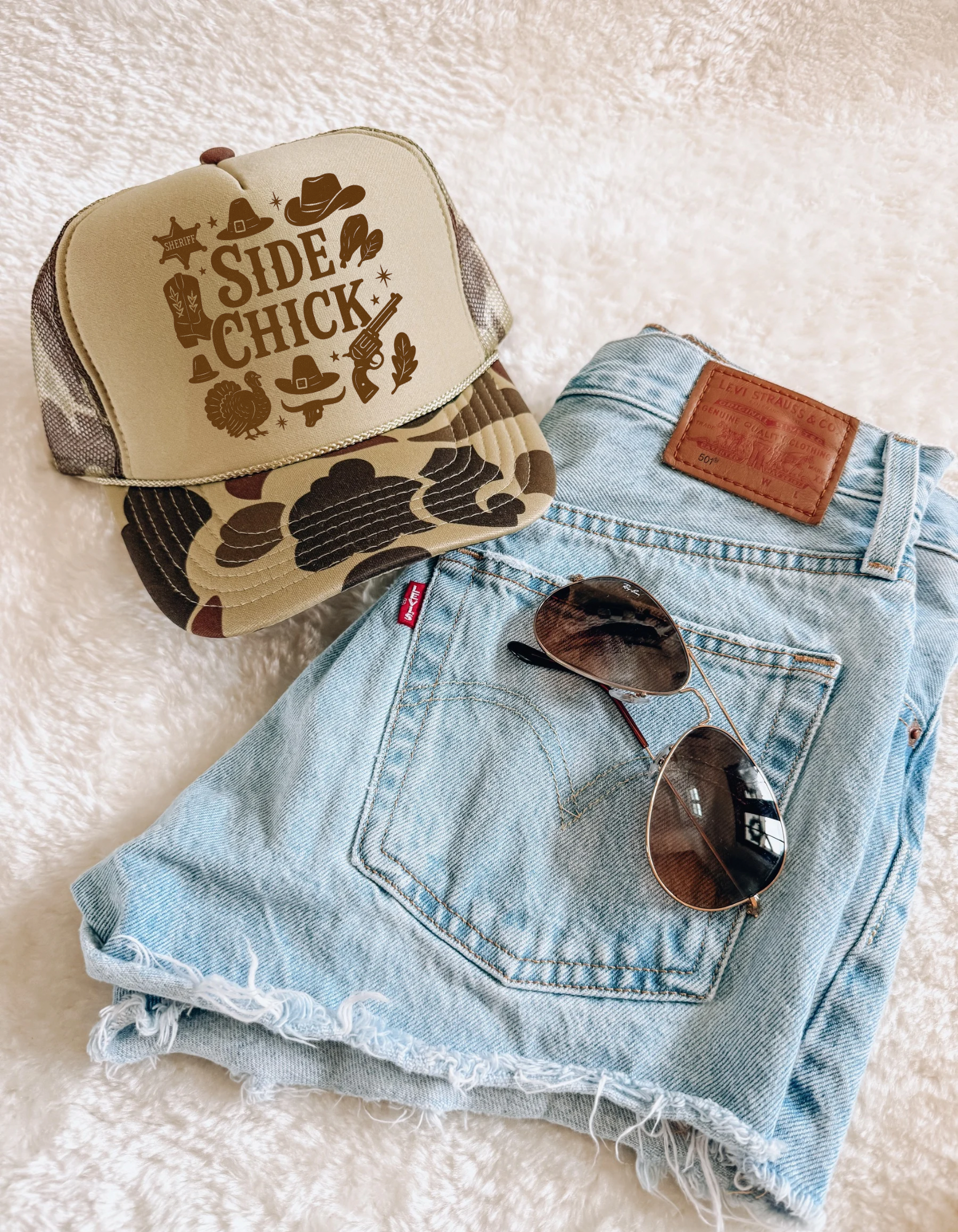 “Side Chick” Western Trucker Hat | Funny Thanksgiving Cowgirl Cap | Fall Turkey Hat | Country Western Trucker | Camo Mesh Hat