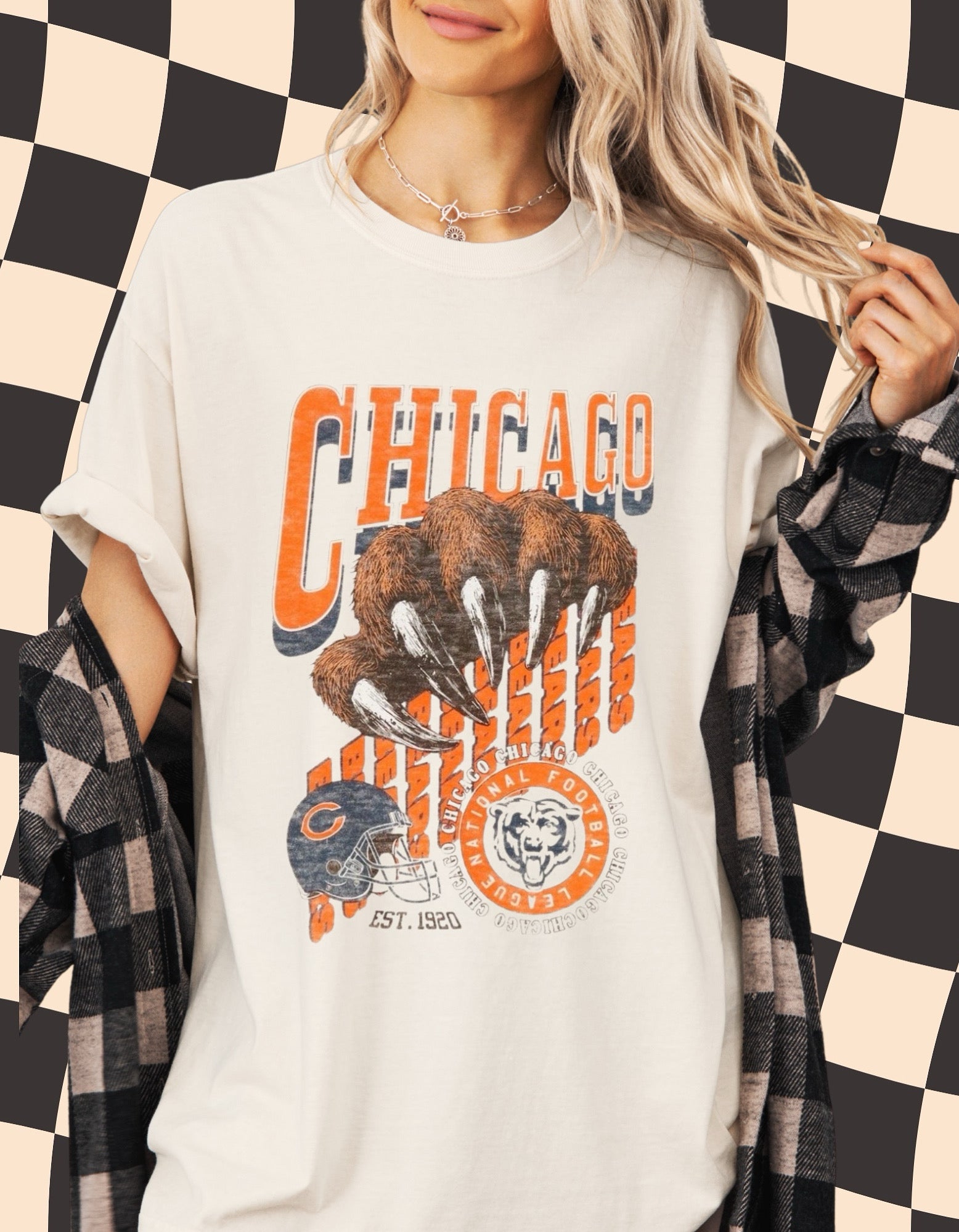 Chicago Bears shirt, retro Bears tee, vintage football t-shirt, oversized Chicago shirt, NFL graphic tee, game day outfit, sports fan shirt, claw graphic shirt, Chicago merch, Midwest football style