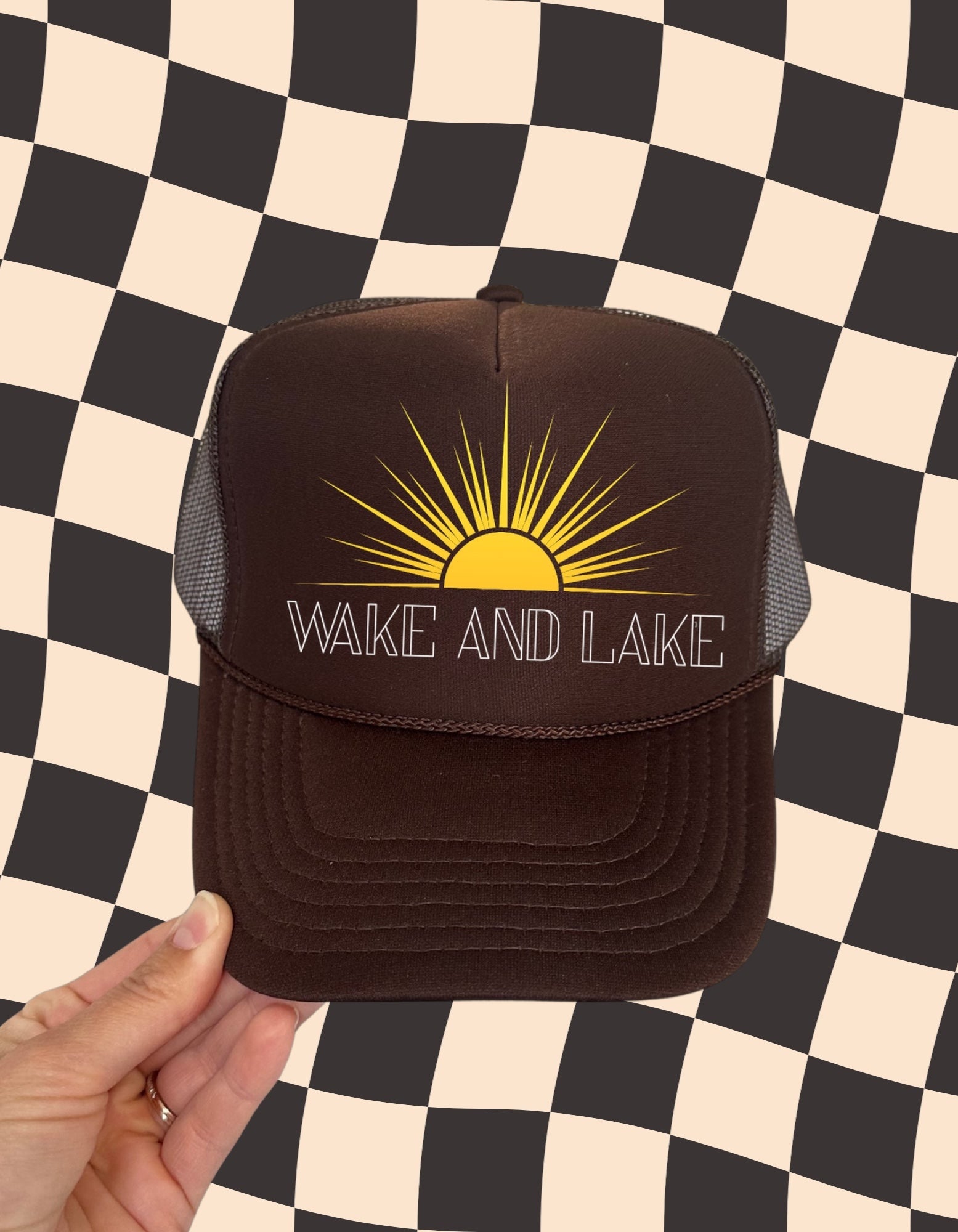 Wake and Lake Trucker Hat – Retro Lake Day Mesh Hat for Summer Adventures